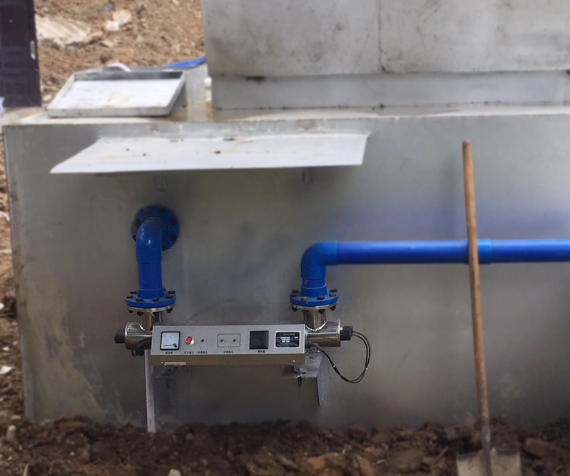 检查外接装置是否无误,下图为紫外线消毒装置,设置顶棚遮雨保护好设备